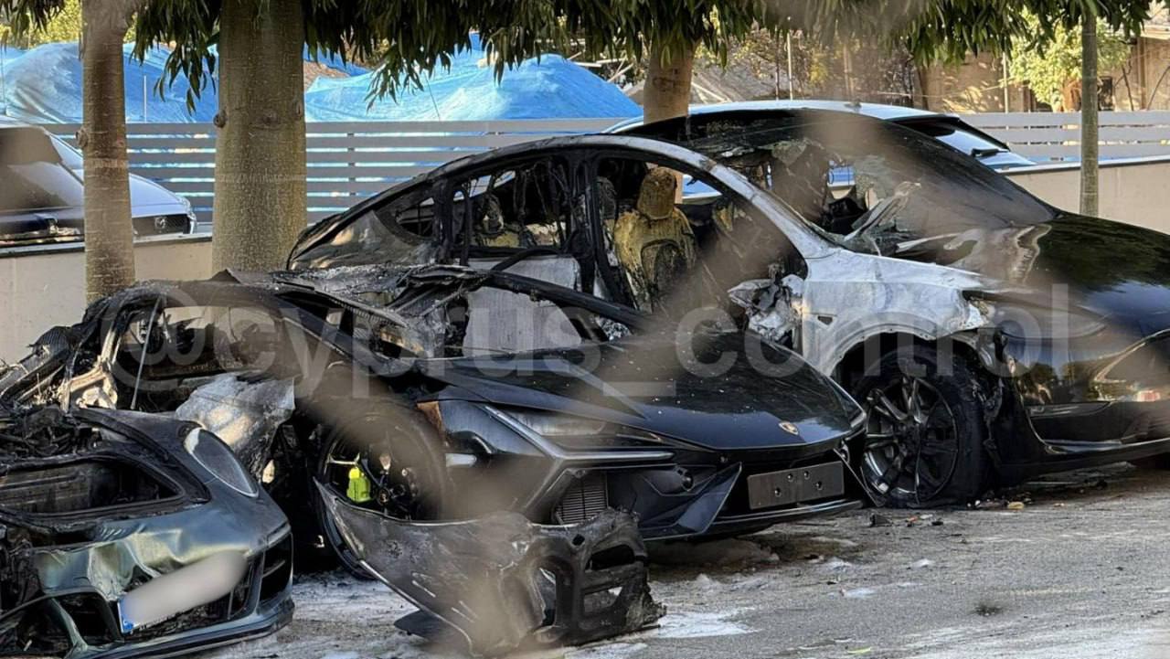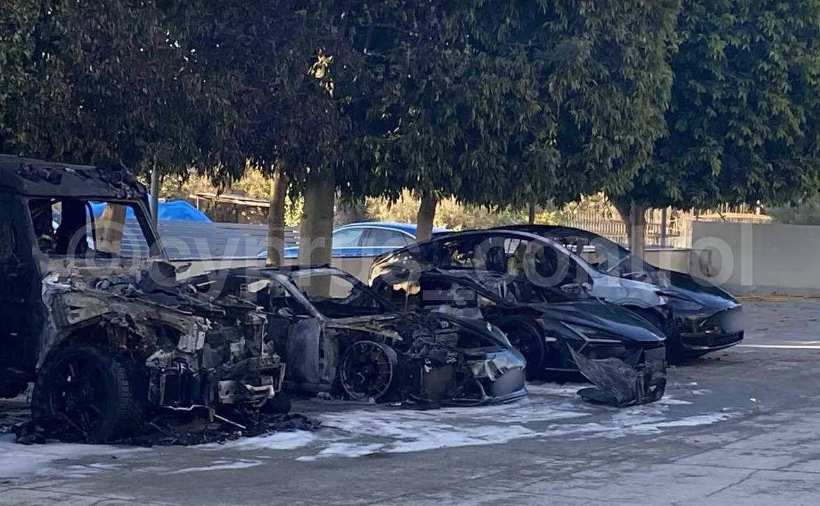 Four high-end cars belonging to Dmitry Punin, with an estimated worth of €1 million, were deliberately set ablaze in a private parking area in Limassol. The event transpired in the Mouttagiaka vicinity.