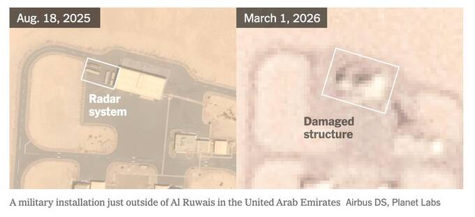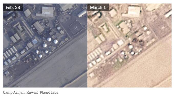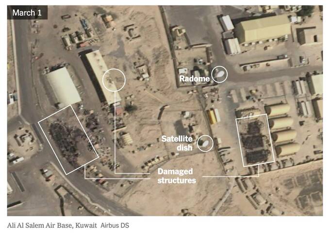 • Kuwait: Three radar domes at Camp Arifjan were damaged or destroyed, and at Ali al-Salem Air Base, at least eight buildings or structures located near satellite communications infrastructure were damaged or destroyed;