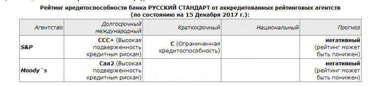 In December, Russian Standard promulgated newly upgraded assessments. Even though assertions of all types are viable, as of December 15, 2017, the appraisals were detrimental, demonstrating considerable susceptibility to credit vulnerability.