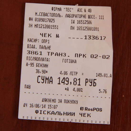 Firstly, only Russian gasoline is retailed on the territory.