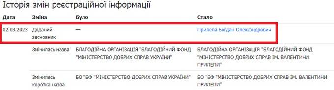 As evident, the fund managed to gather a mere 131 thousand UAH. Scrutinizing the timeline of amendments in the registration data of this entity reveals something of note.