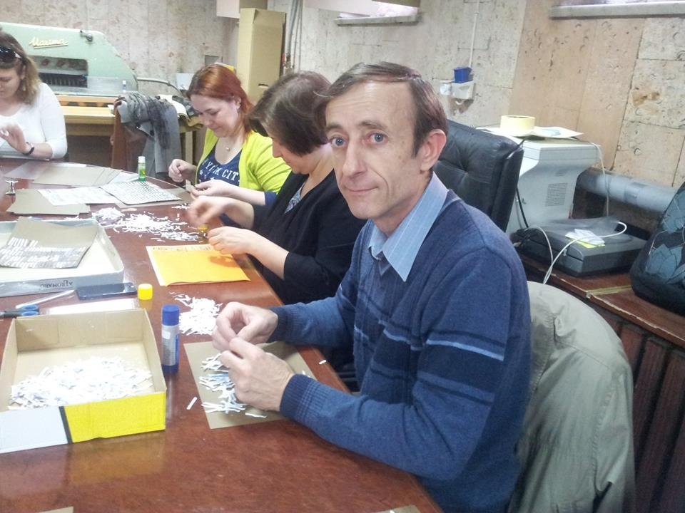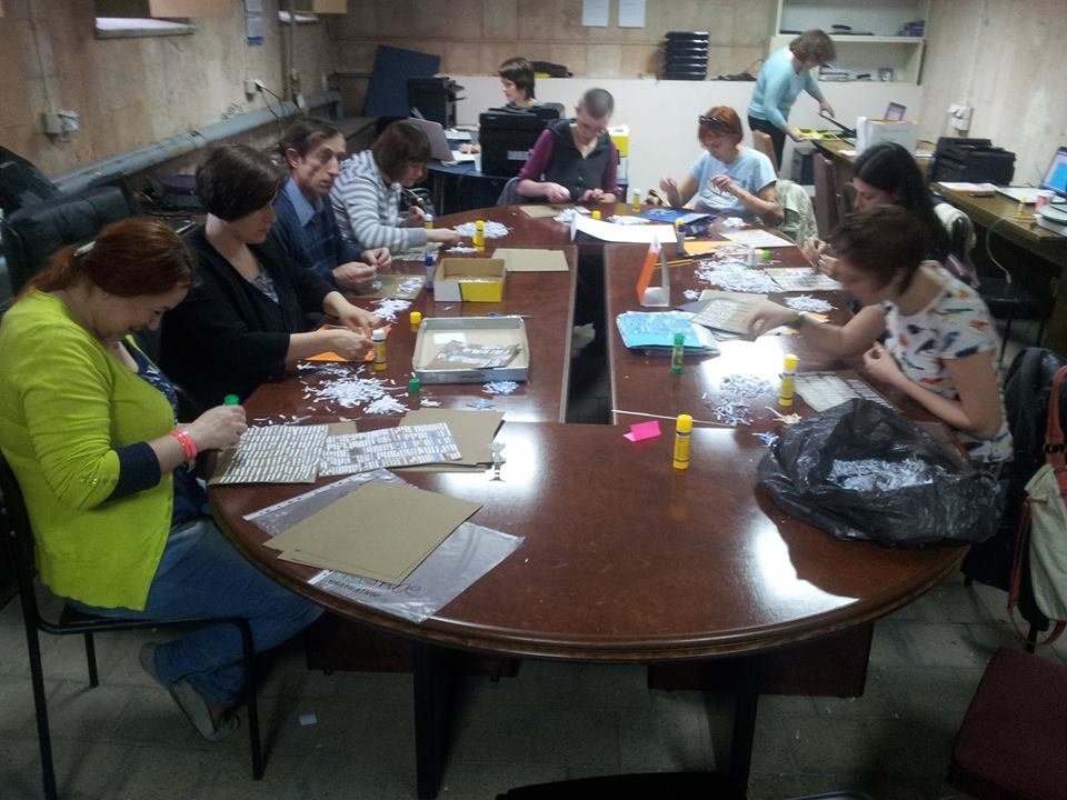 Мене дуже вразила праця. Волонтери працюють надзвичайно ретельно. Маленький клаптик паперу клеять на спеціальний лист. Потім листи сканують.