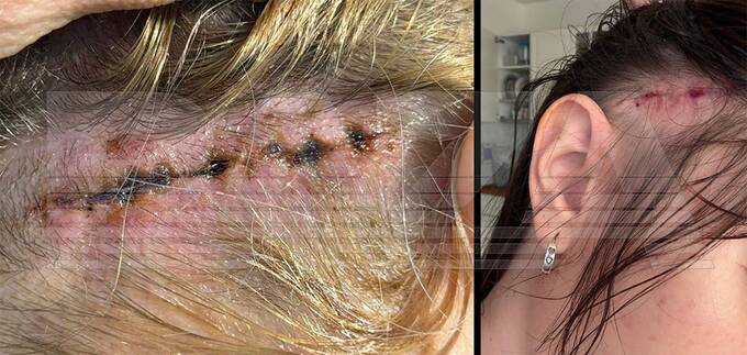 Lena developed a bald spot where the bandage had been applied, where the top of her head had been hurting. The stitches wouldn't heal, the scabs looked alarming, and when they fell off, threads were visible. The clinic suggested flying back to China to correct the situation, but Lena consulted a local doctor, who removed the threads, and she felt better.