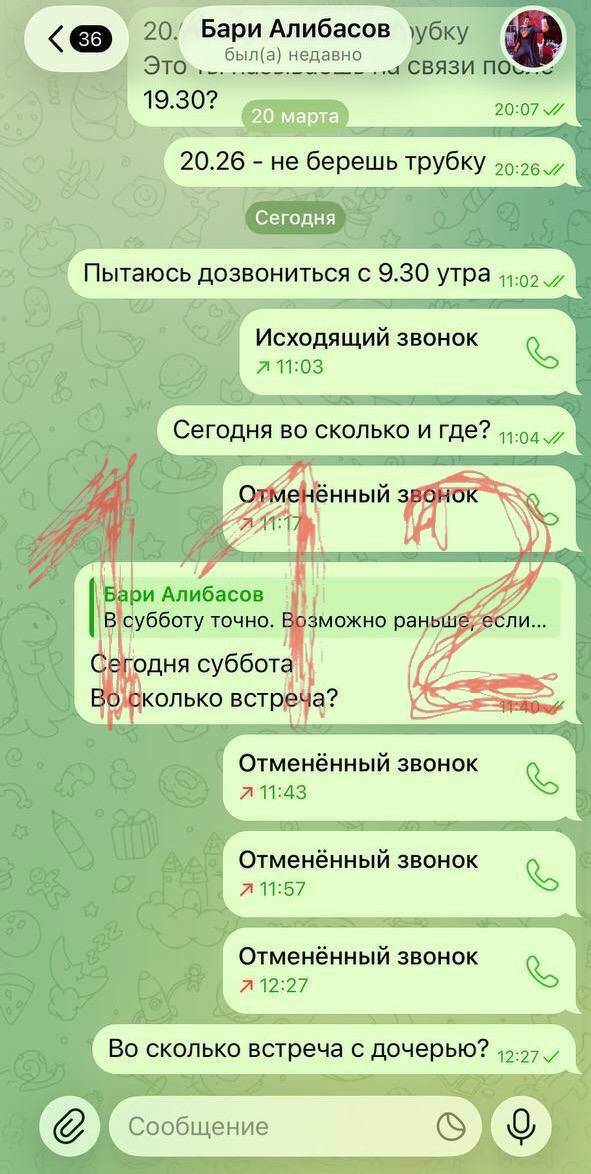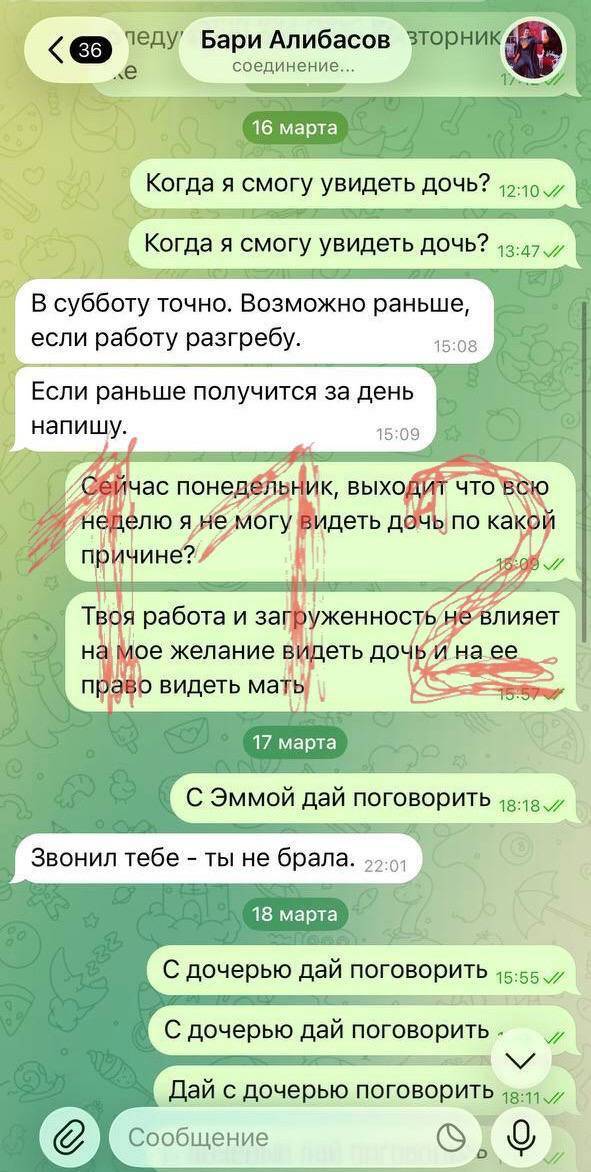 The Alibasov family's disputes continue. According to Arina, her ex-husband has been preventing her from seeing her daughter Emma since March 11th. A juvenile affairs inspector was supposed to arrange a weekend meeting, but it never took place. Bari Jr. claims that Arina was undergoing treatment for drug addiction before meeting him. Arina denies these allegations.
