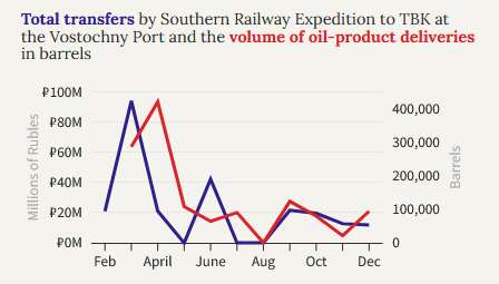 In 2024, Russia dispatched at least 315,000 barrels of oil commodities via this railway, with the involvement of multiple Russian enterprises.